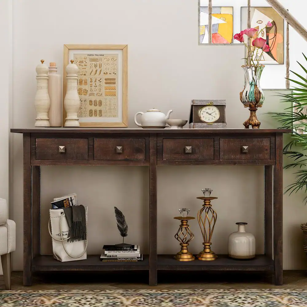 Harper & Bright Designs 59 in. Espresso Standard Rectangle Wood Console Table with 4-Drawers