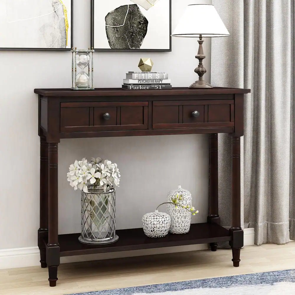Harper & Bright Designs 36 in. Espresso Standard Rectangle Wood Console Table with 2-Drawers