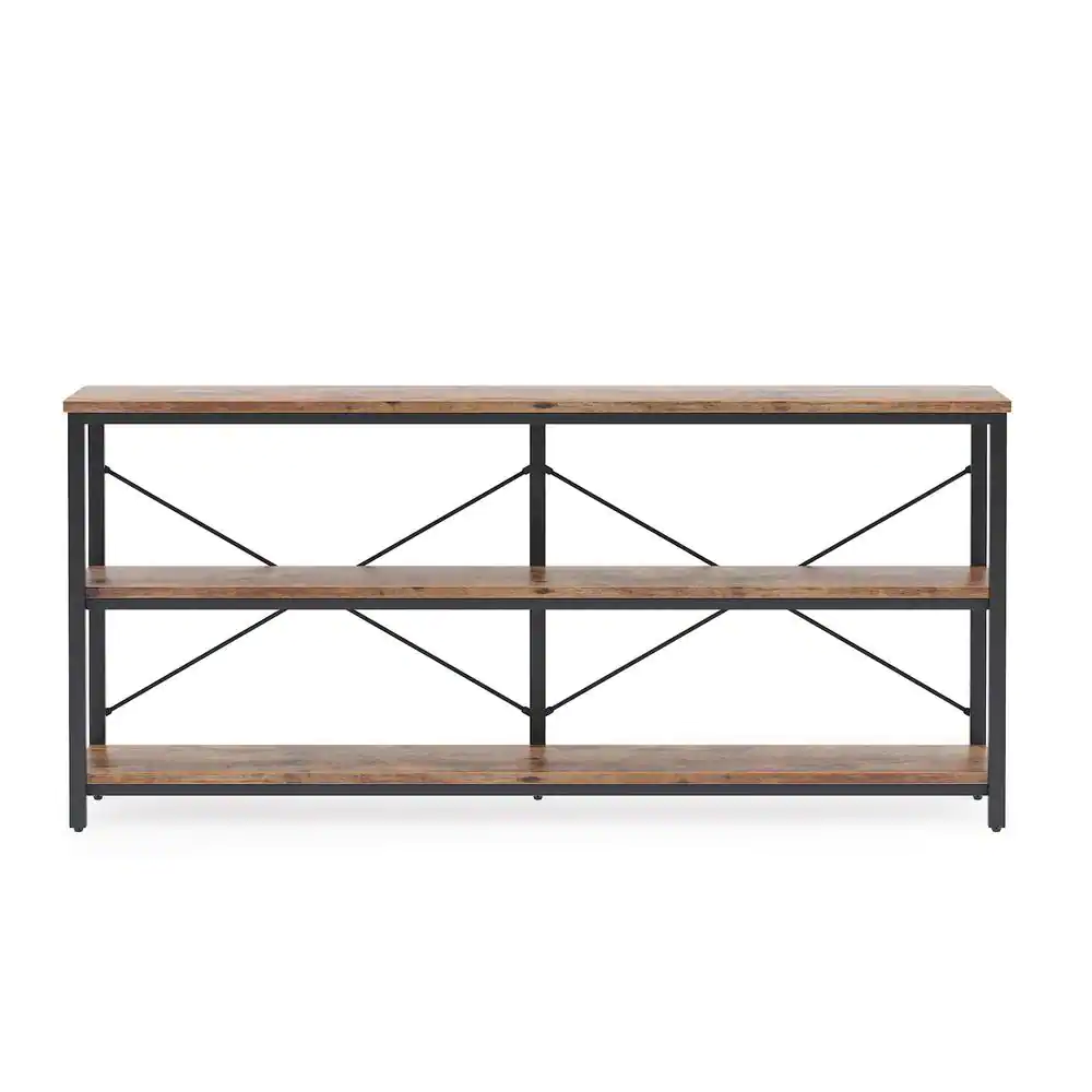 None Turrella 70.9 in. Brown 35.8 in. Height Rectangle Wood Console, Sofa Extra Long Behind Couch Table with 3 Shelf