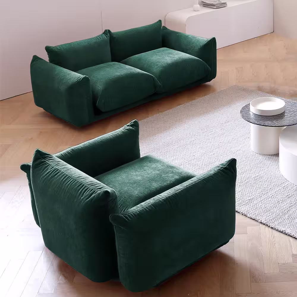 None 2-Pieces Flared Arm Wide Square Shape Chenille Top Green Sofa Couch Living Room Set (1-Seat Plus 2-Seats)