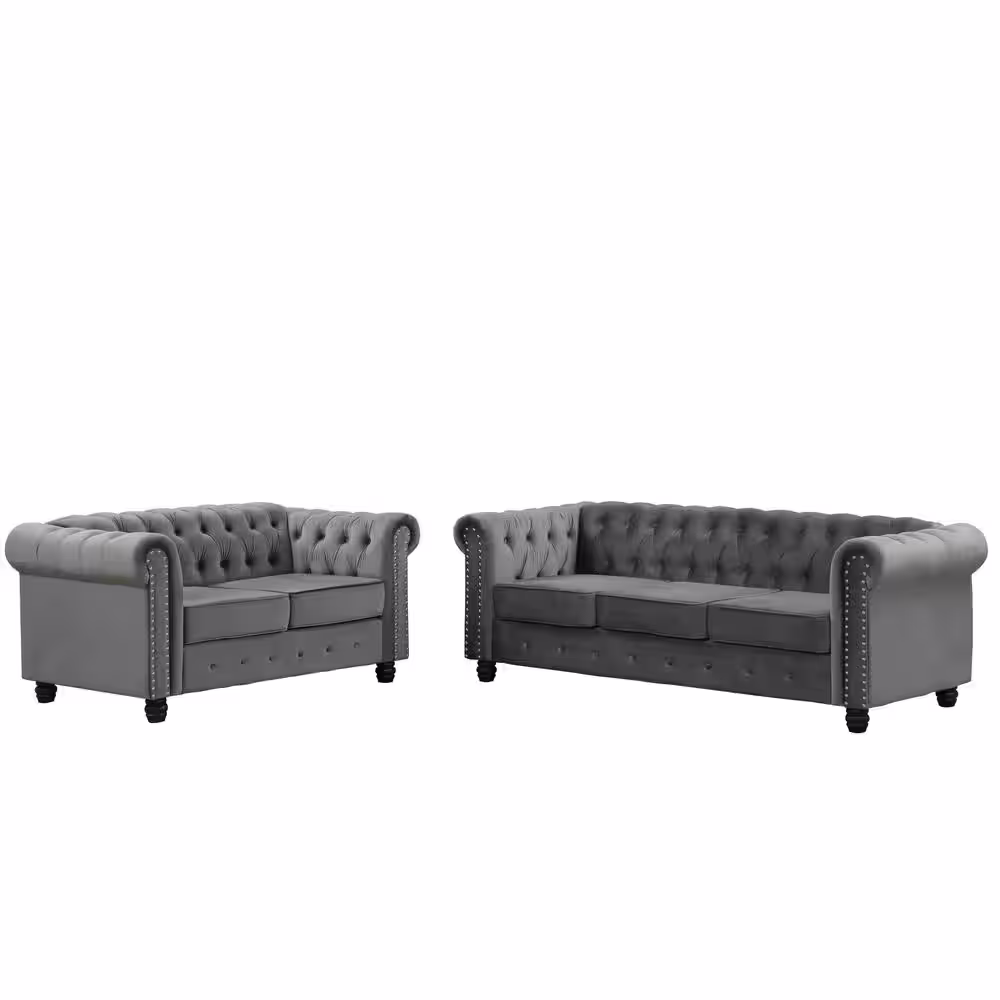 Morden Fort Velvet Couches for Living Room Sets Loveseat and Sofa 2 Pieces Top in Gray