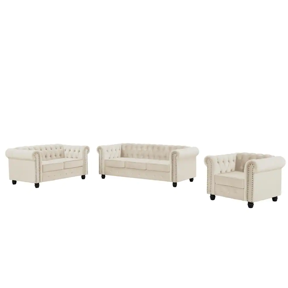 Morden Fort Velvet Couches for Living Room Sets, Chair, loveseat and Sofa 3 Pieces Top in Beige