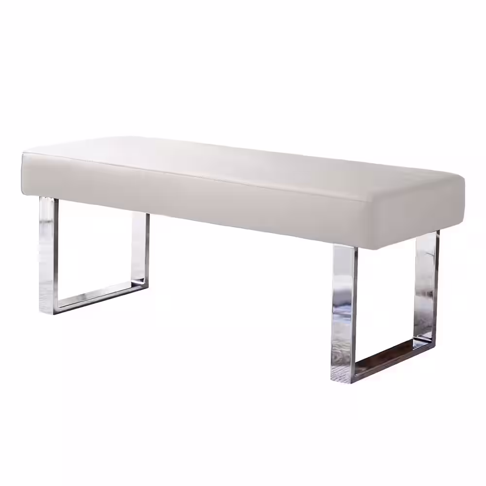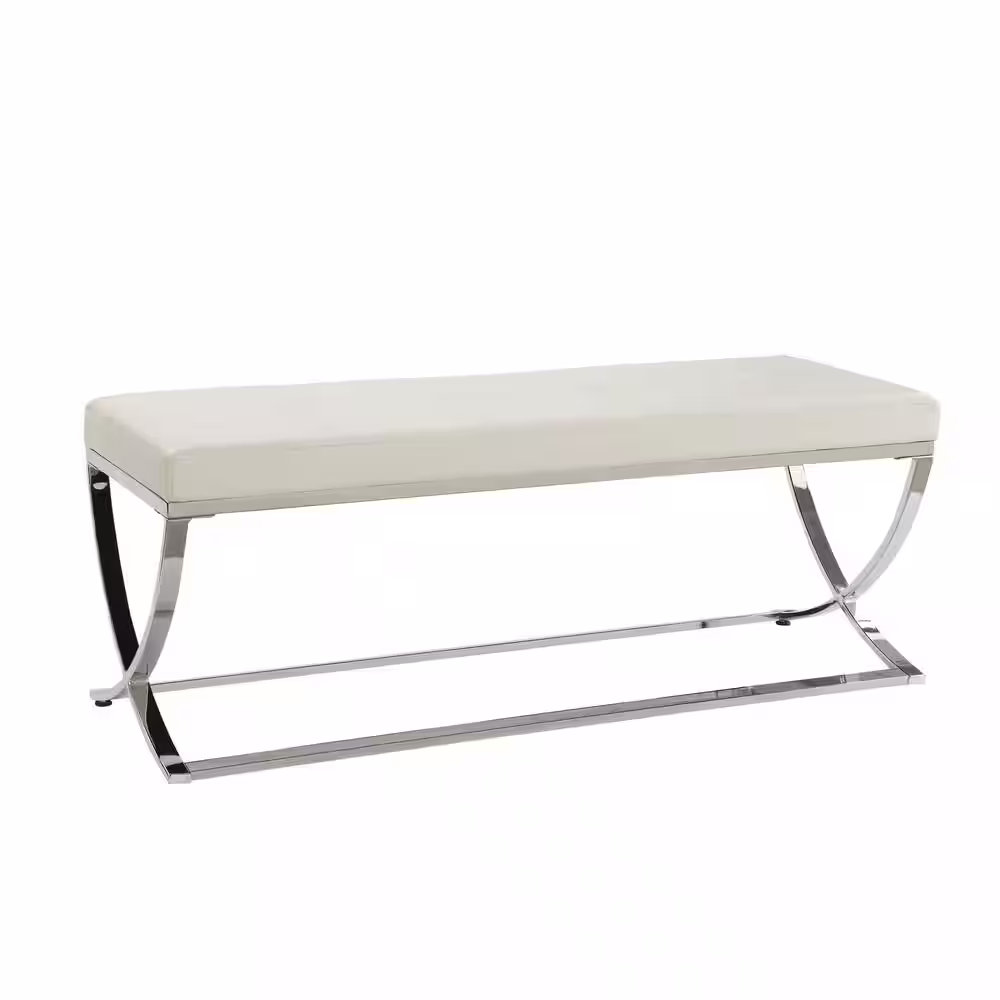 Coaster Home Furnishings Man-Made Leather Bench with Metal Base White and Chrome