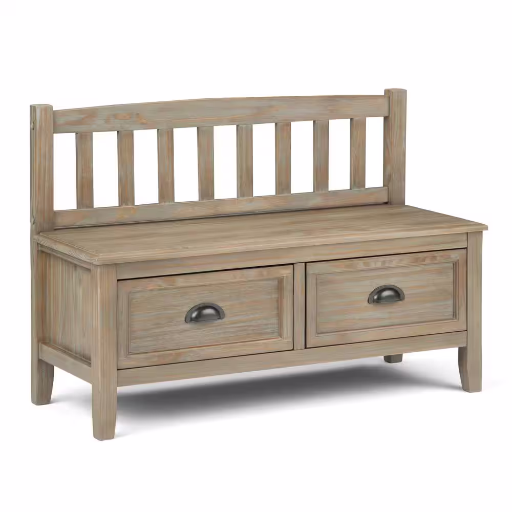 Simpli Home Burlington Solid Wood 42 in. Wide Transitional Entryway Storage Bench with Drawers in Distressed Grey