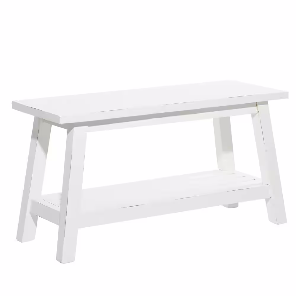 Litton Lane White Single Shelf Bench 19 in. X 36 in. X 13 in.