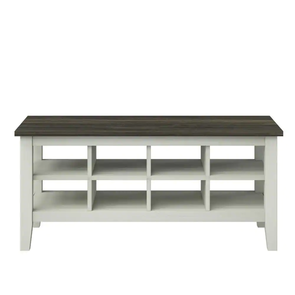 Twin Star Home Old Wood White Storage Bench with Removable Dividers 17.88 in. x 40 in. x15.5 in.
