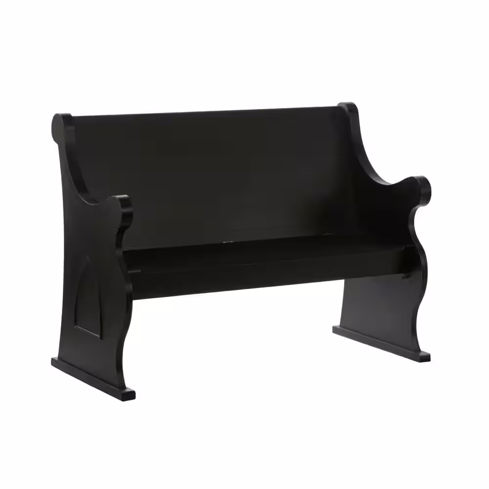 Litton Lane Black Storage Bench with Scrolled Armrests 36 in. X 50 in. X 24 in.