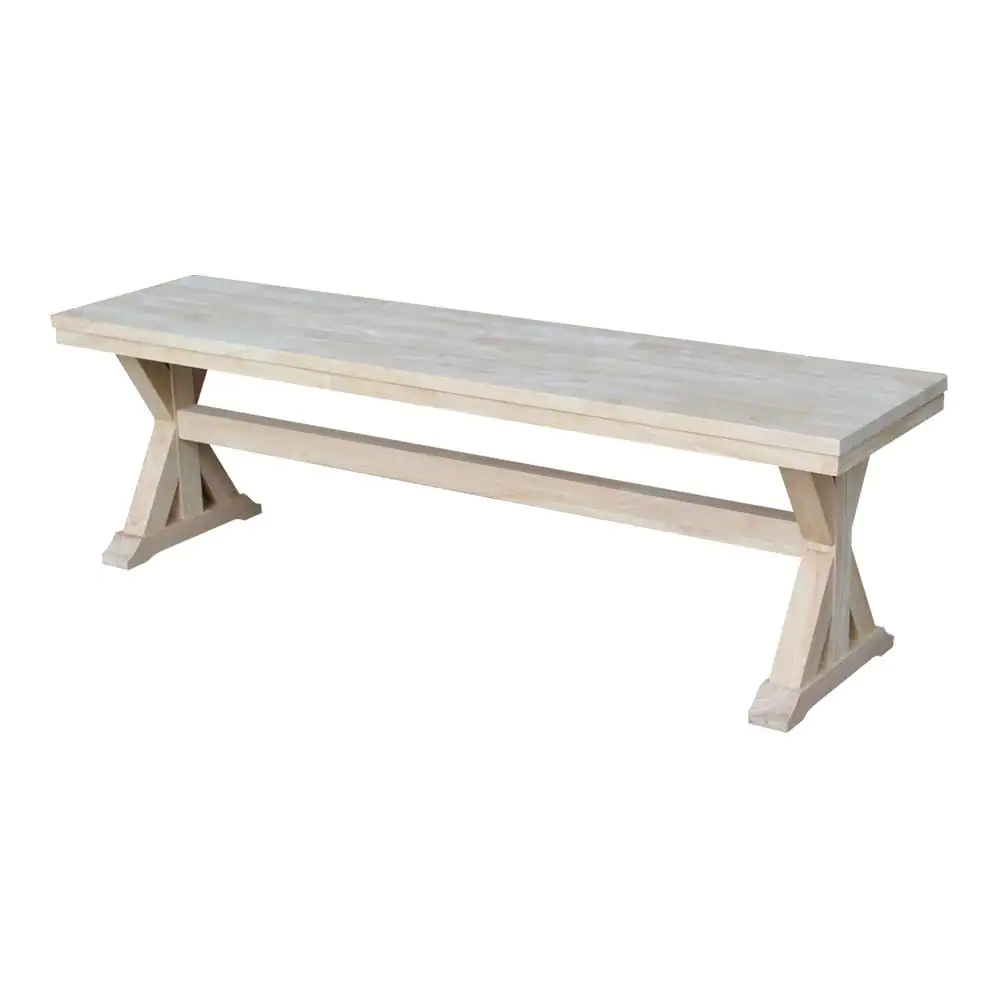 International Concepts Unfinished Solid Wood 74 in. W Trestle Dining Bench