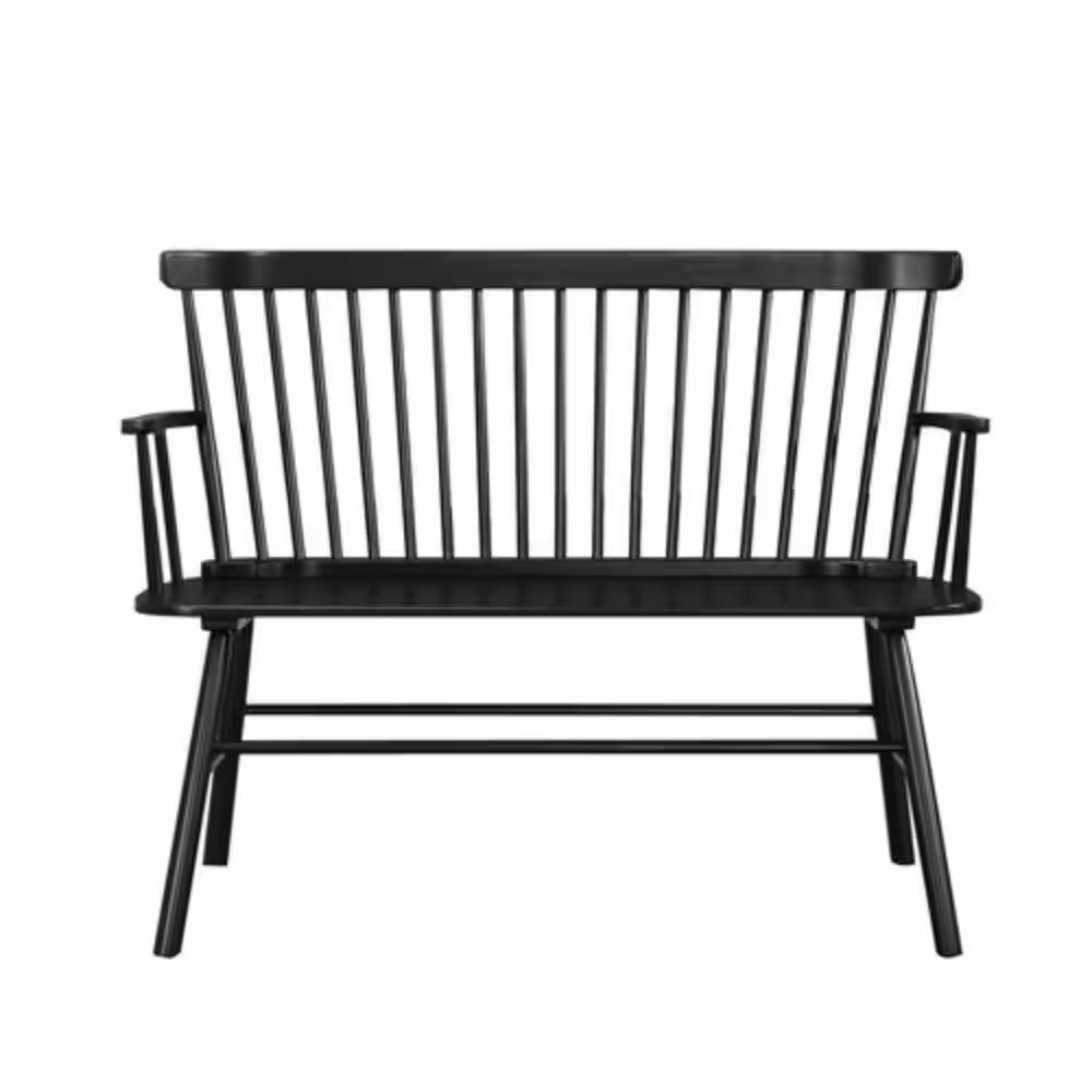 Benjara Transitional Style Black Curved Design Spindle Back Bench with Splayed Legs 48 in. L x 19 in.W x 36 in.H