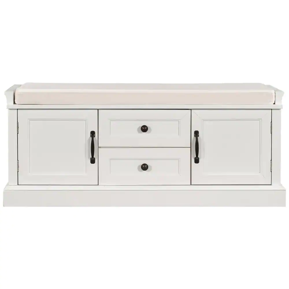 Polibi White Storage Bench with 2 Drawers and 2 cabinets for Living Room, Entryway (42.5''W x 15.9''D x 17.5''H)