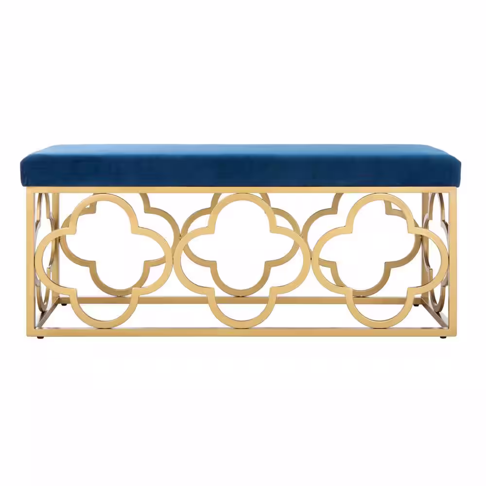 SAFAVIEH Fleur 44 in. Navy/Gold Upholstered Entryway Bench