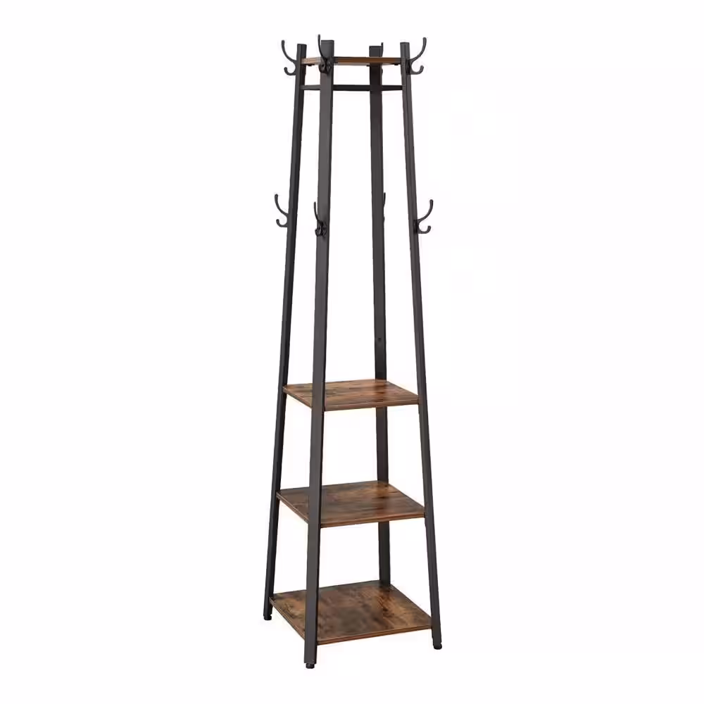 Tribesigns Cynthia Brown Freestanding Garment Rack with Storage Shelves Hang Rod and 4 Hooks