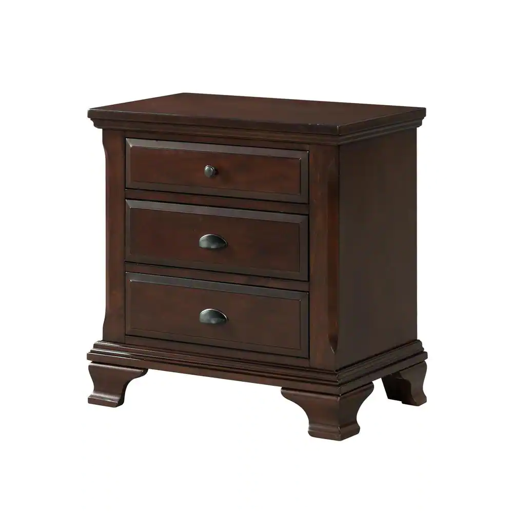 None Bathory 3 -Drawer Walnut Solid Wood Nightstand 30 in. H x 32 in. W x 18 in. D