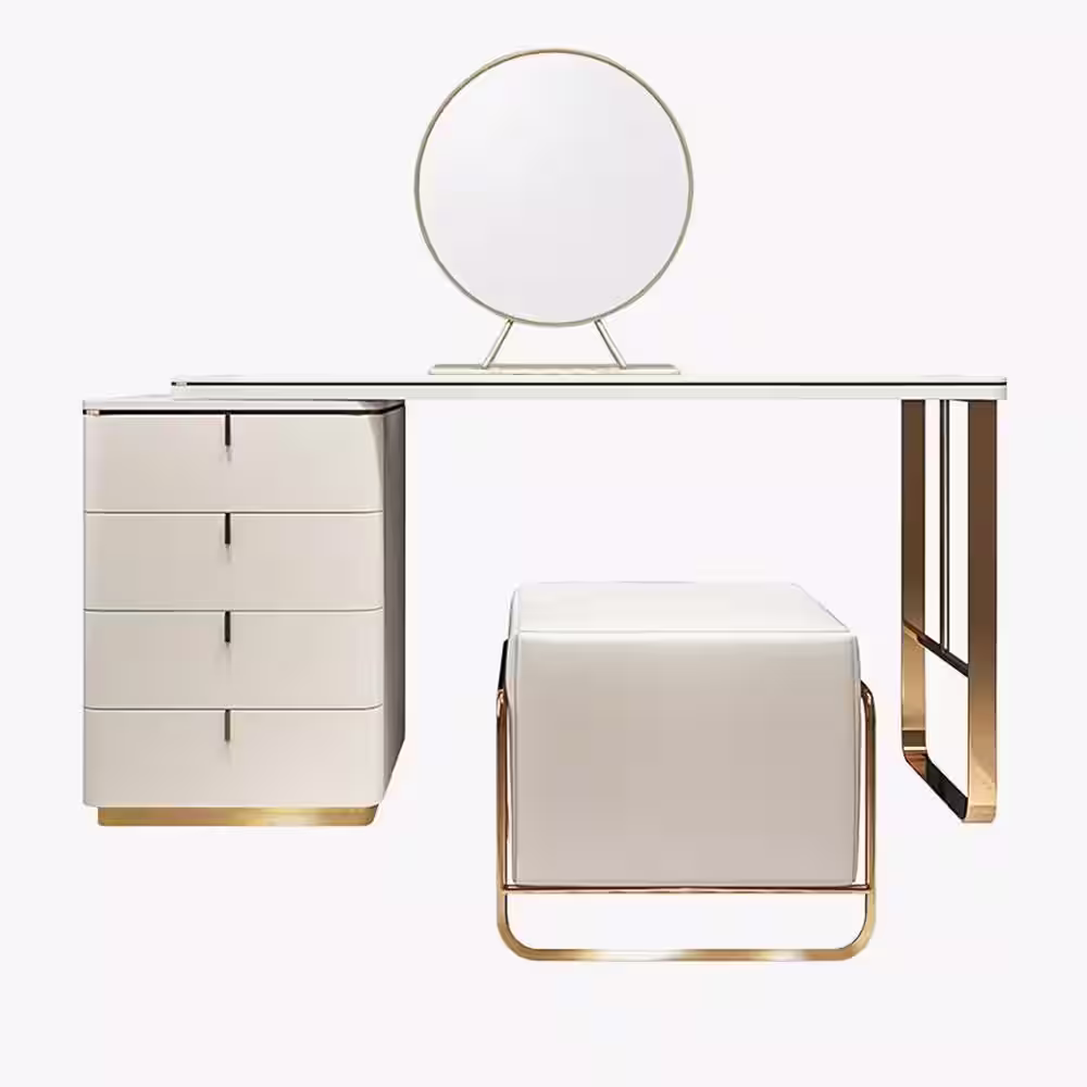 FORCLOVER White Modern Luxury Makeup Vanity Table with Vanity Mirror, 4 Side Drawers and Stool (28 in. x 47 in. x 18 in.)