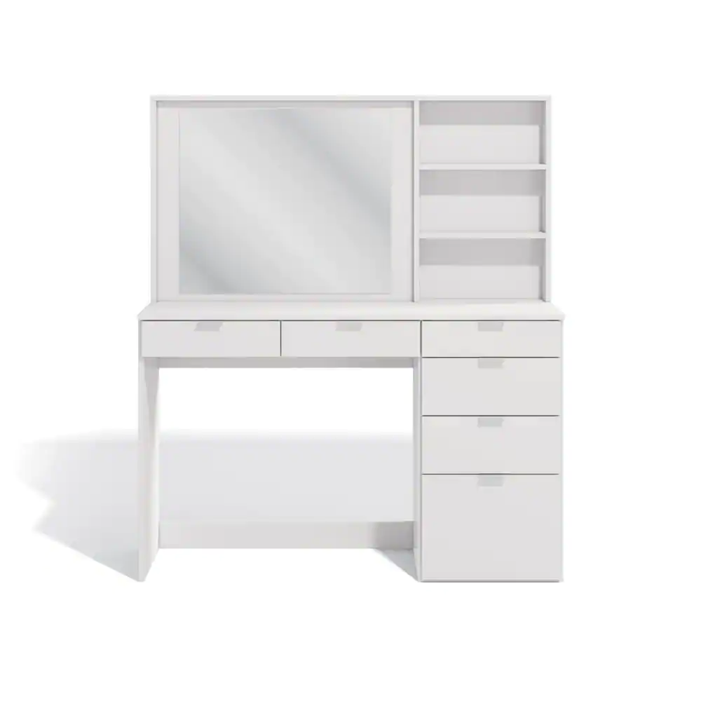 None Julie 6-Drawer White Vanity with Mirror 54.33 in. H x 47.25 in. W x 17.7 in. D