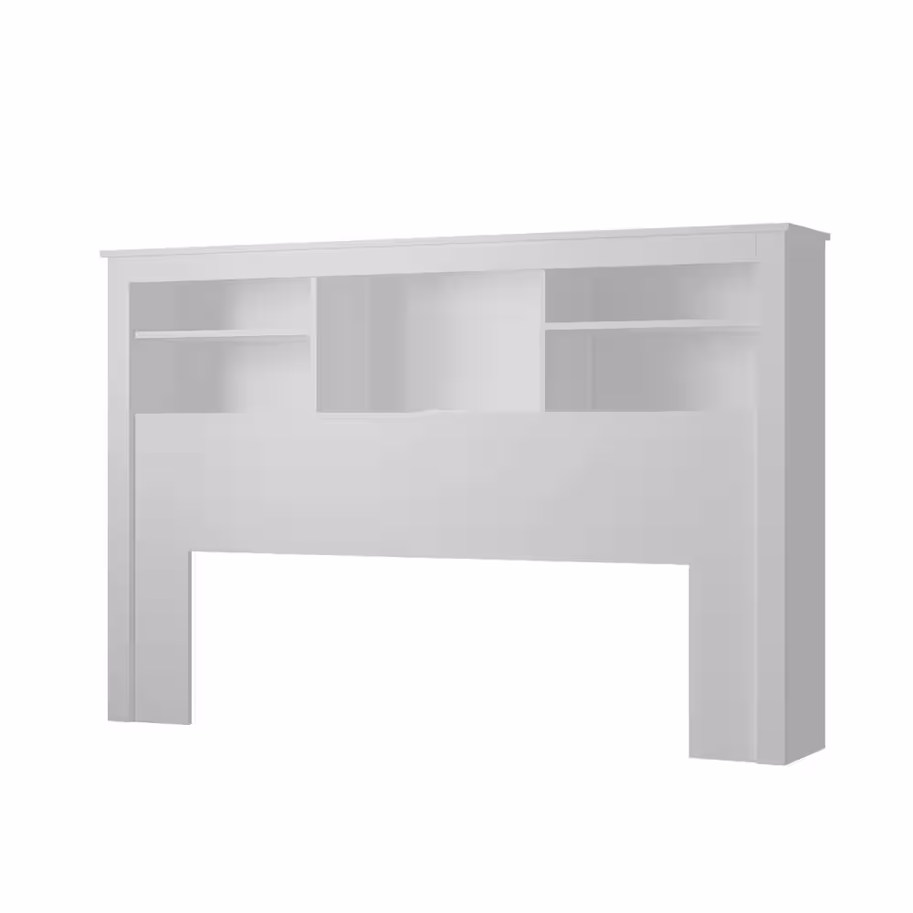 None 5-Shelves White Wood Full Queen Headboard Shelf With LED Lights