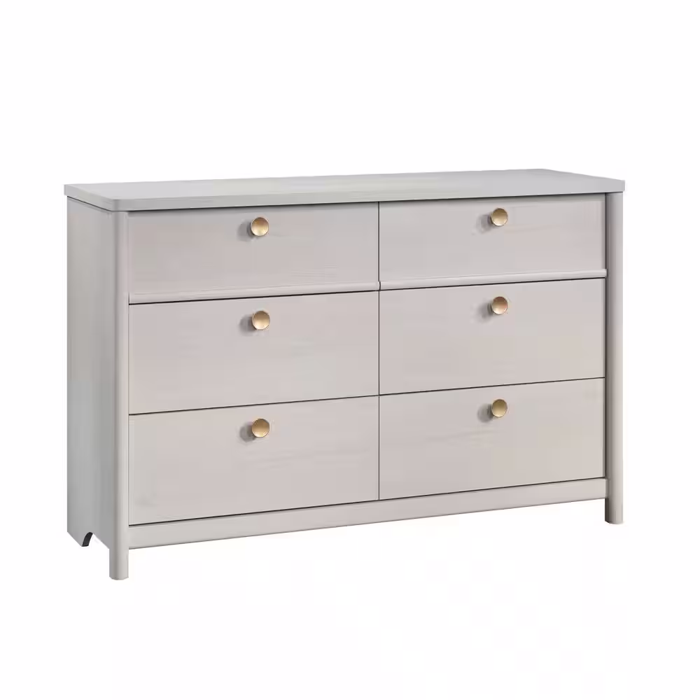 SAUDER Dover Edge 6-Drawer Glacier Oak Dresser 32.795 in. x 50.945 in. x 17.244 in.