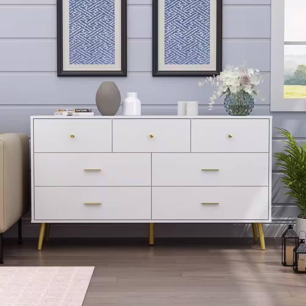 FUFU&GAGA 7-Drawer White Dresser, 31.5 in H-55.9 in W-15.7 in D