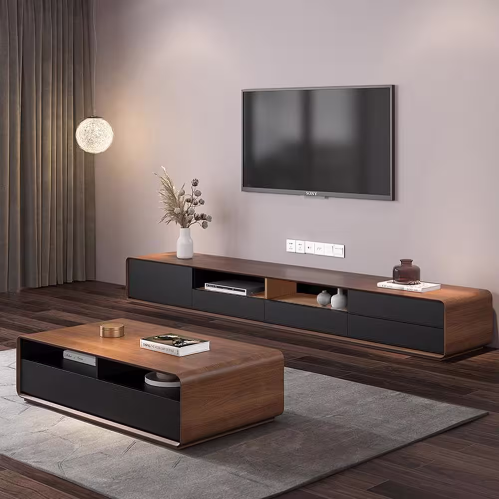 J&E Home 94.5 in. Modern Wood Brown TV Stand Fully-assembled with 4-Drawers Fits TV's up to 100 in.