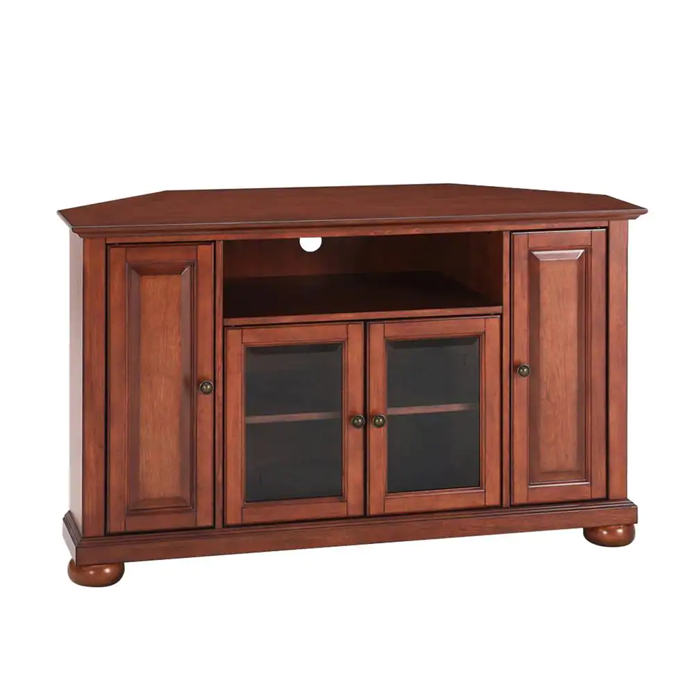 Crosley Alexandria 48 in. Cherry Wood Corner TV Stand Fits TVs Up to 52 in. with Storage Doors