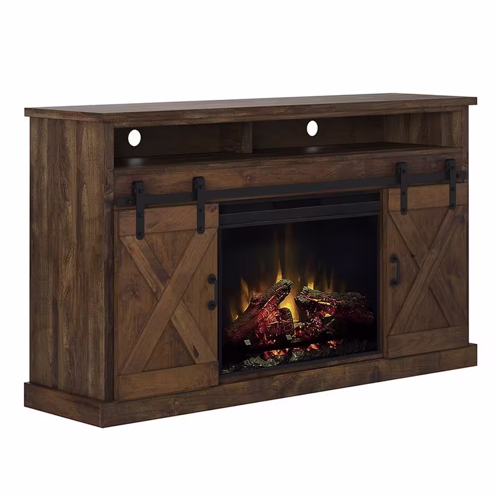 Bridgevine Home Nantucket Denim & Whiskey TV Stand Fits TV's up to 85 in. with Electric Fireplace