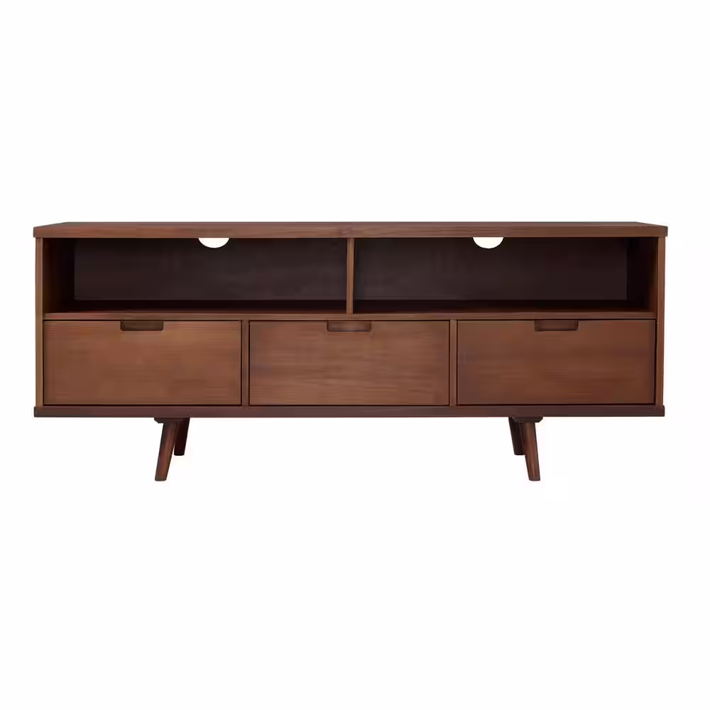 Walker Edison Furniture Company Ivy 58 in. Walnut Wood TV Stand with 3 Drawers Fits TVs Up to 64 in. with Cable Management
