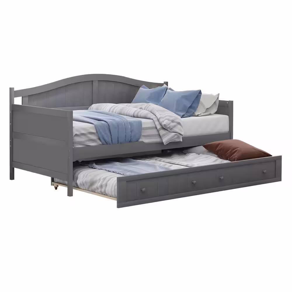 None Gray Twin Wooden Daybed with Trundle Bed (78.2 in. L x 42.3 in. W x 35.4 in. H)
