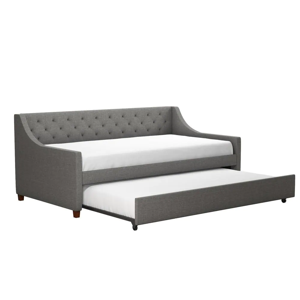 Novogratz Her Majesty Gray Linen Twin Daybed and Trundle
