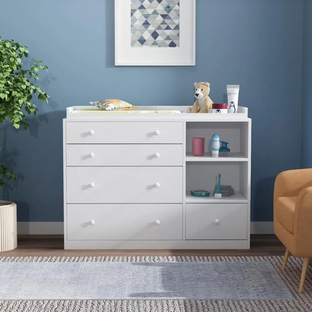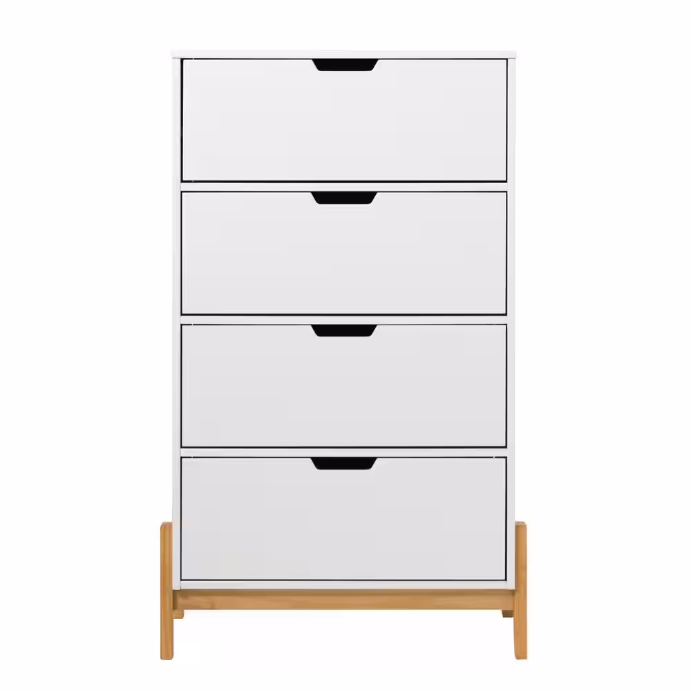 Welwick Designs 4-Drawer White Wood Modern Chest of Drawers with Contrasting Legs