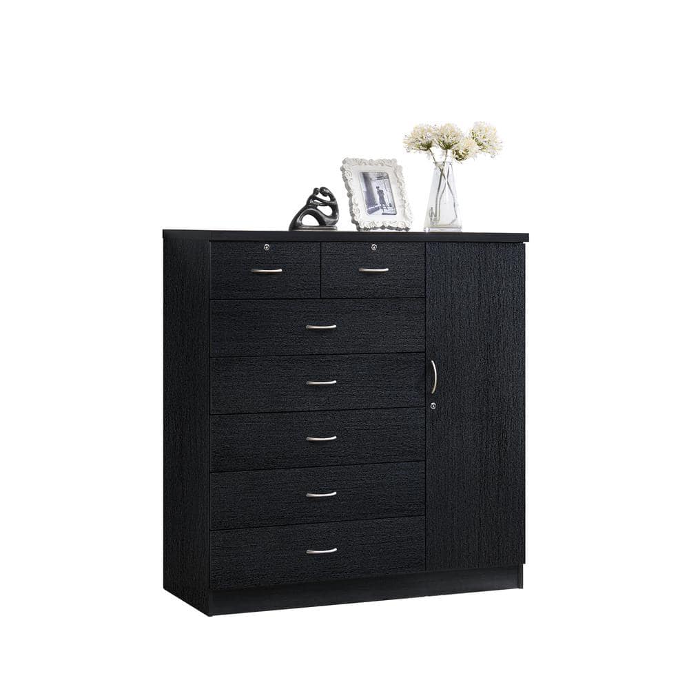 HODEDAH 7-Drawer Black Chest of Drawers with Door