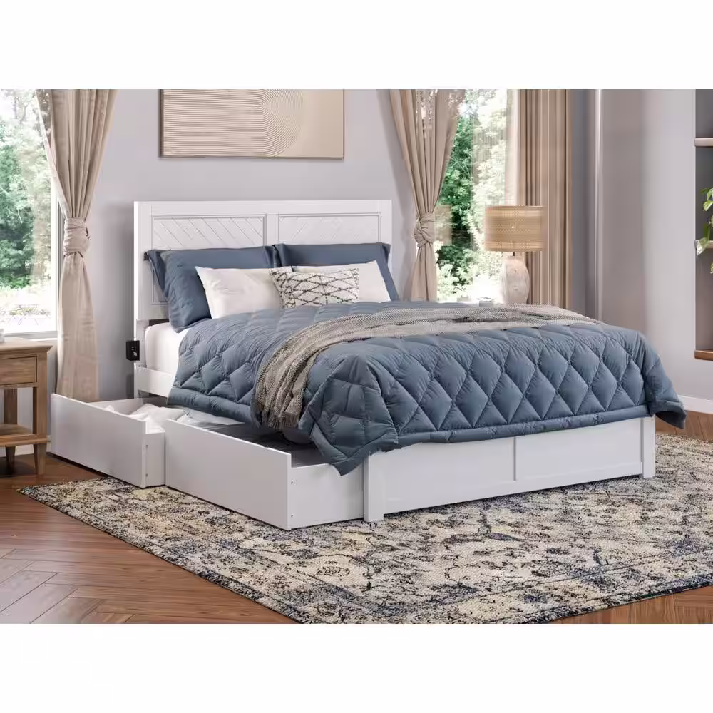None Canyon White Solid Wood Frame Queen Platform Bed with Footboard and Set of 2-Bed Drawers