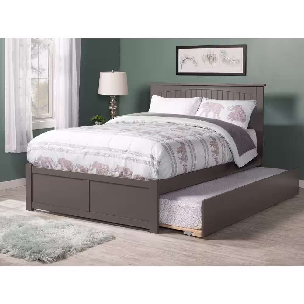 None Nantucket Gray Solid Wood Frame King Platform Bed with Twin XL Trundle and Footboard