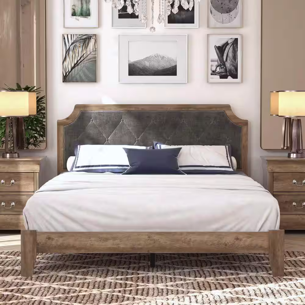 GALANO Annifer Knotty Oak Upholstered Queen Bed With Headboard