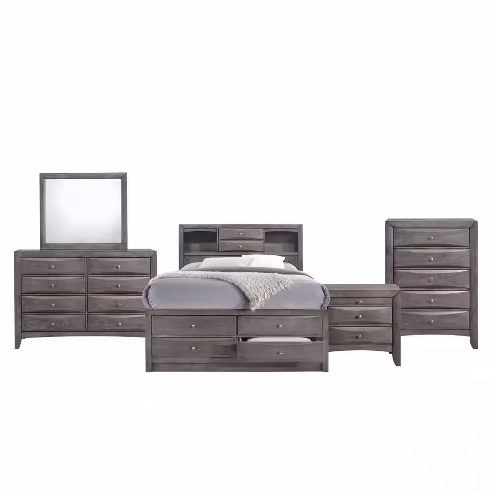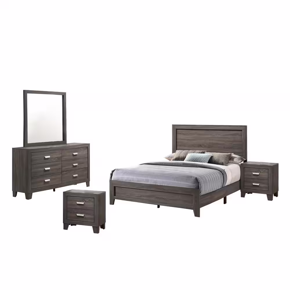 None Anastasia 5-Piece Gray Queen Panel Bedroom Set