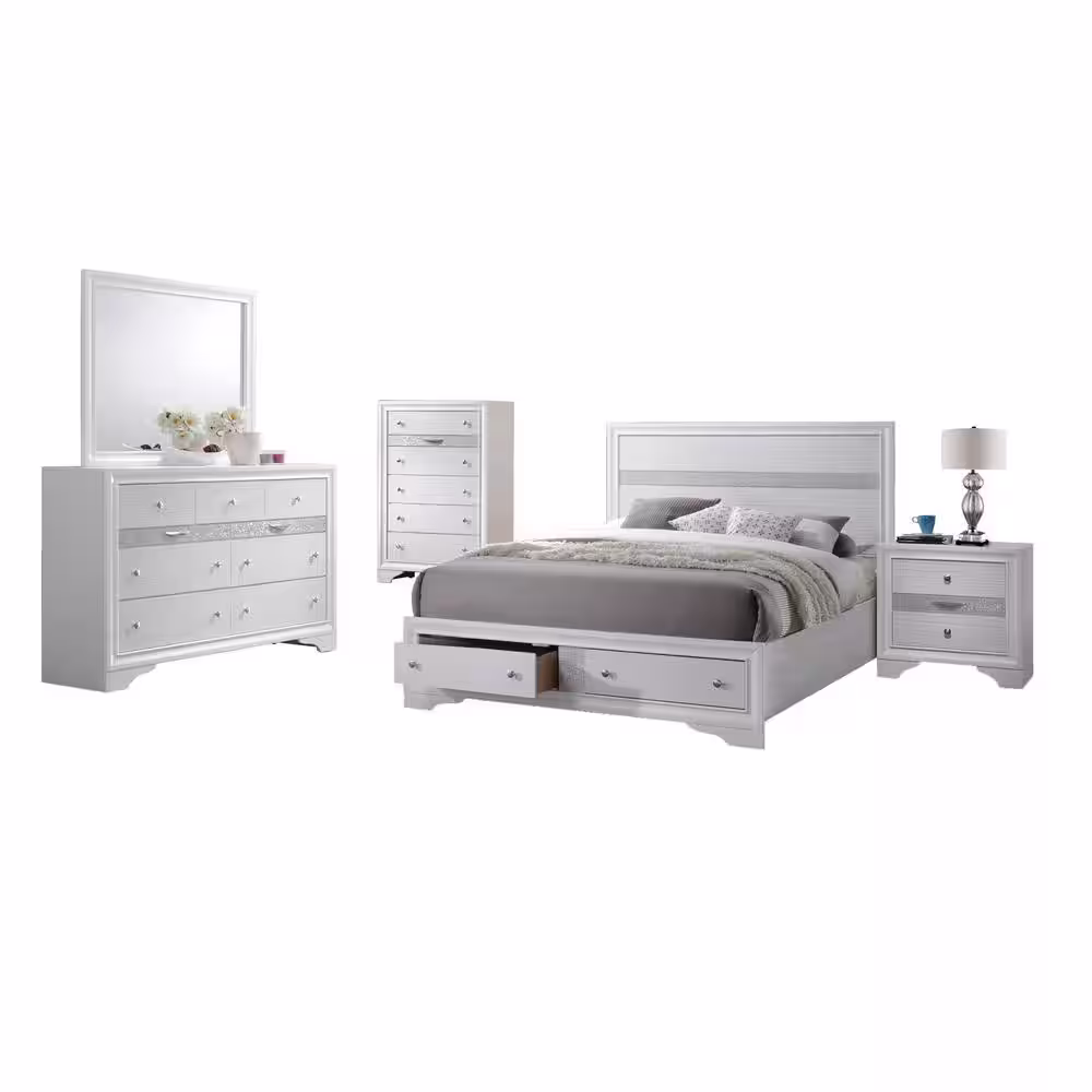 Best Quality Furniture Catherine 5-Piece White Queen Bedroom Set With Chest