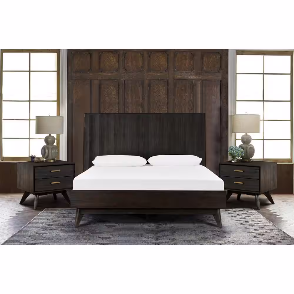 Armen Living Baly 3-Piece Brushed Brown-Gray Acacia Queen Bedroom Set