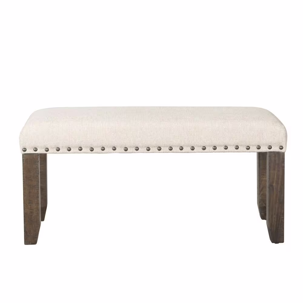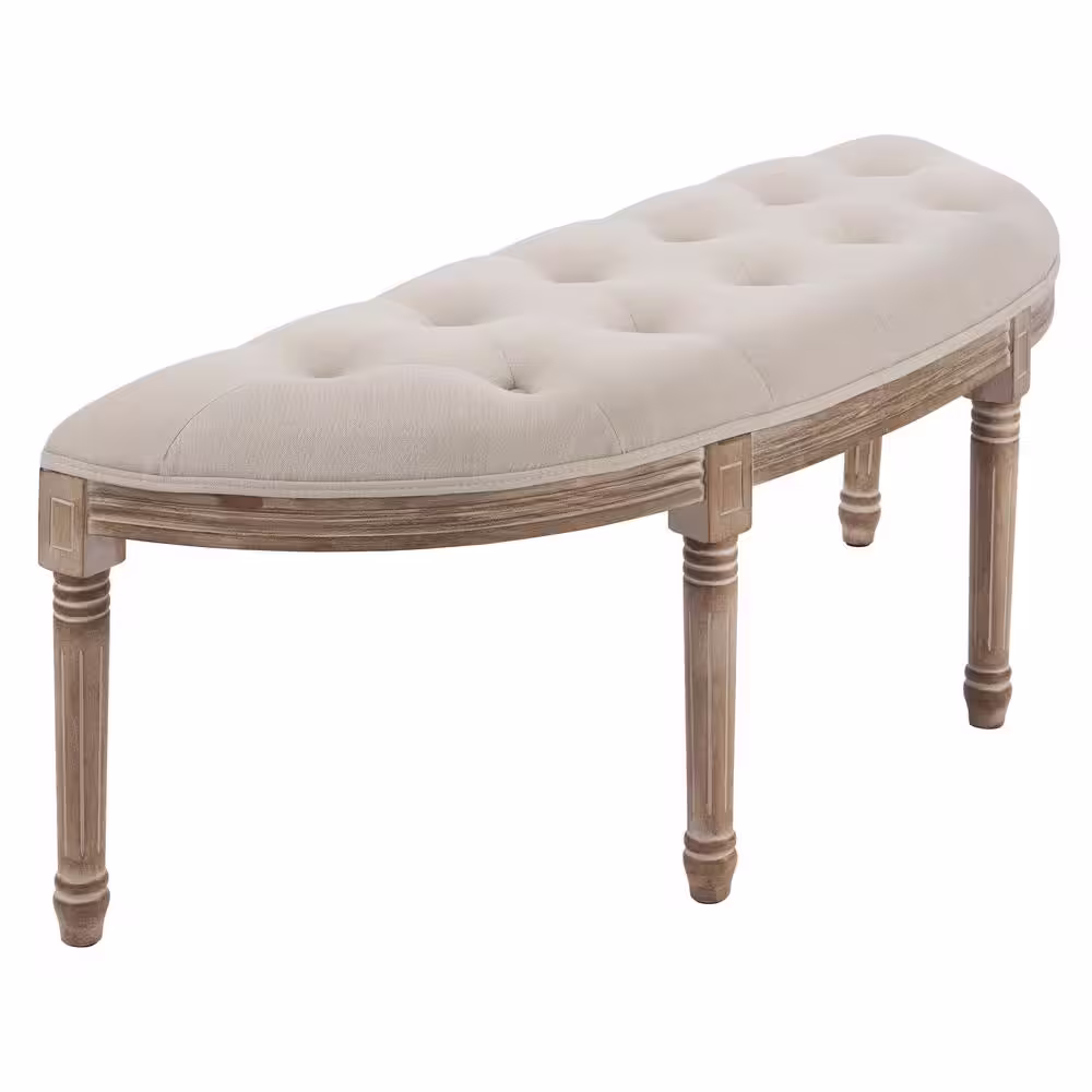 Merra Vintage Wood Half Moon Carved Upholstered Bench with Solid Wood Frame