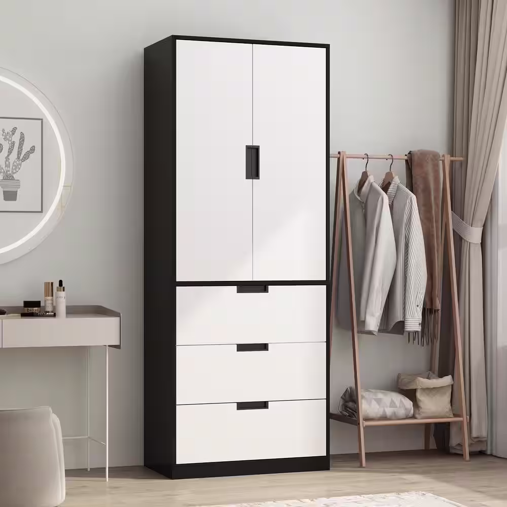 FUFU&GAGA White Wood 27.6 in. W Armoires Wardrobe With Sliding Hanging Rods, 3 Drawers (15.7 in. D x 27.6 in. W x 70.9 in. H)