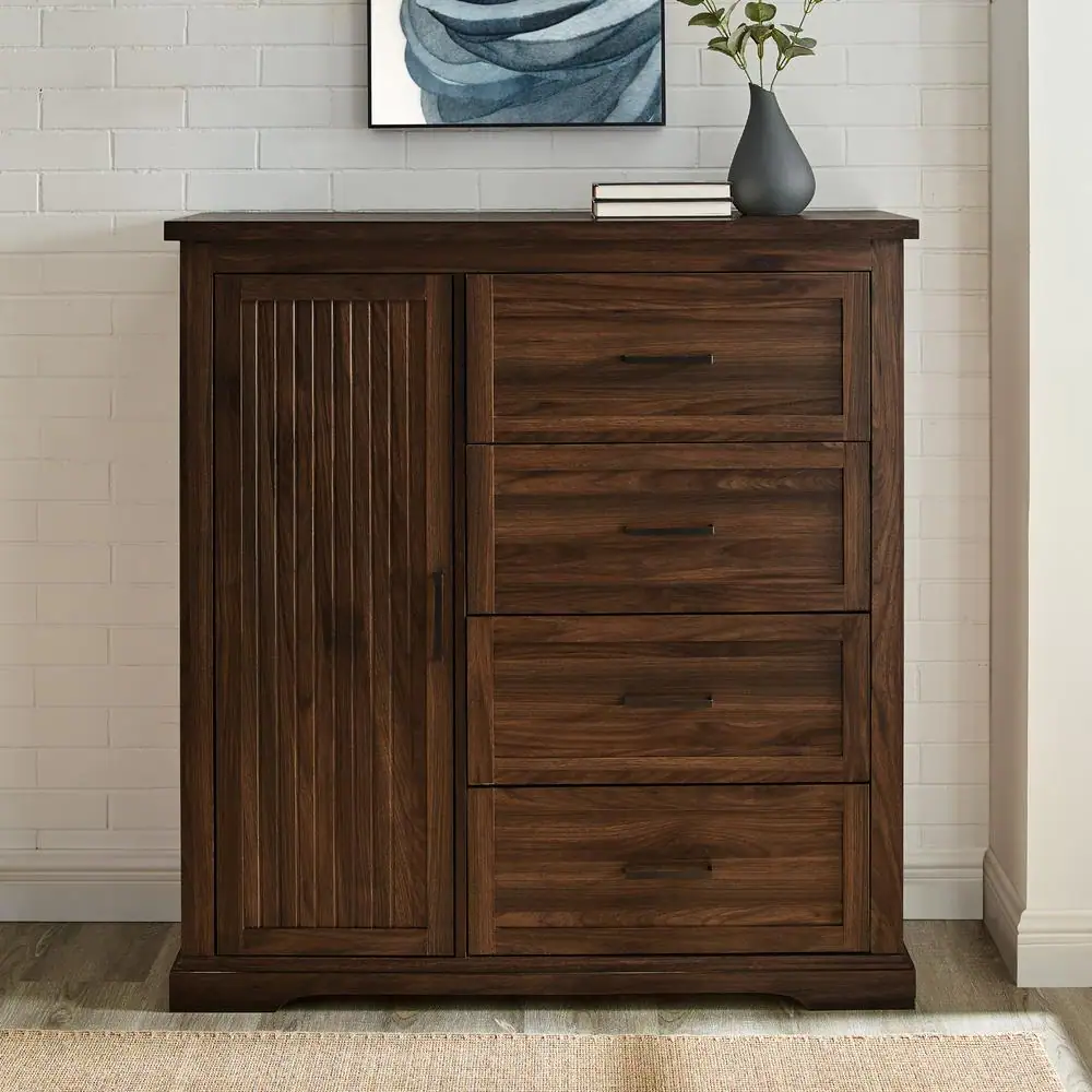 Welwick Designs 45 in. W. Dark Walnut Wood 4-Drawer and 1-Cabinet Transitional Wardrobe