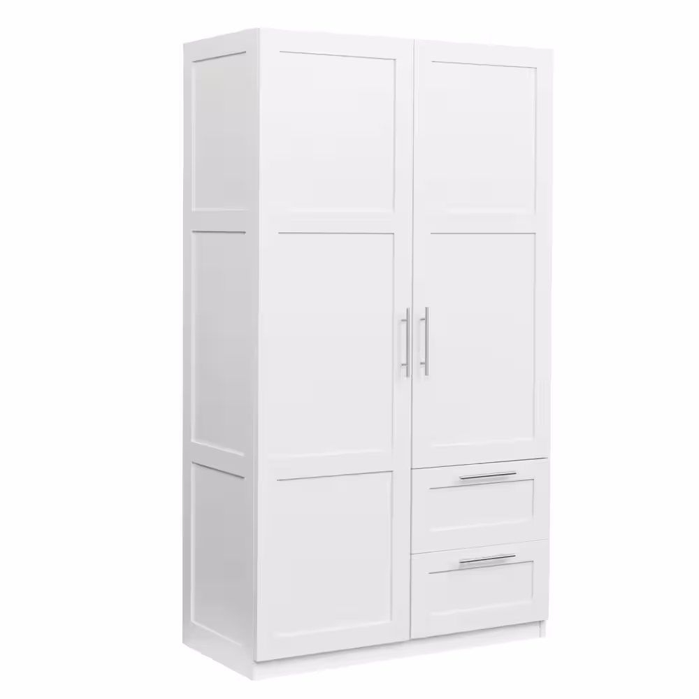 None White Simple Wooden Armoire with 2 Drawers and 5 Storage Spaces( H 71 in. X W 40 in. X 20 in. D)