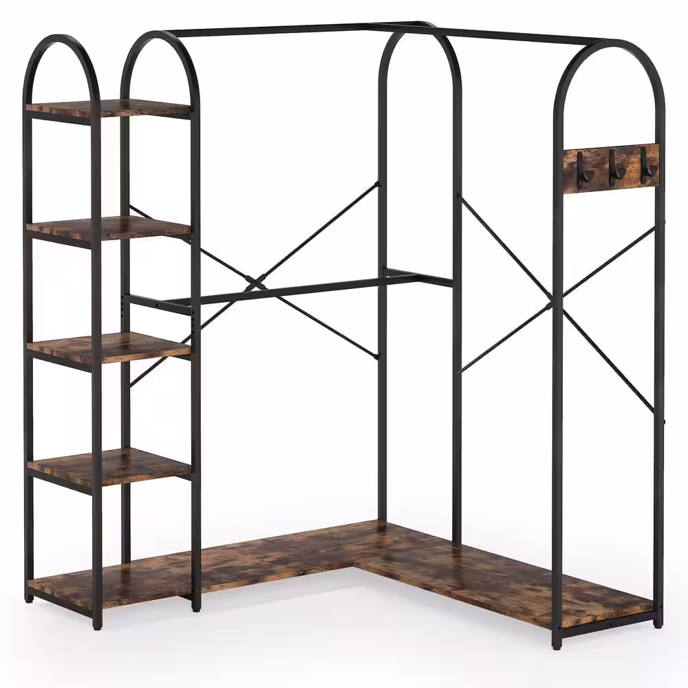Tribesigns Cynthia 71 in. Brown Wooden Corner Hanging Armoire(71 in. H x 56 in. W x 56''D)