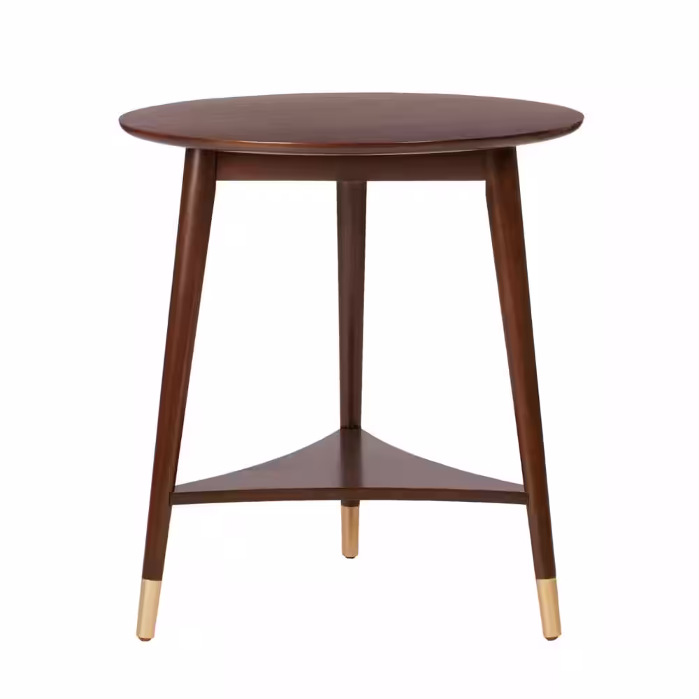StyleWell Ramsey Round Sable Brown Wood End Table with Brass Caps (22 in. W x 24 in. H)