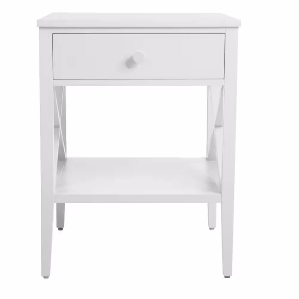 StyleWell Oakley Rectangular White Wood 1 Drawer End Table with X Side Detail (18 in. W x 24 in. H)