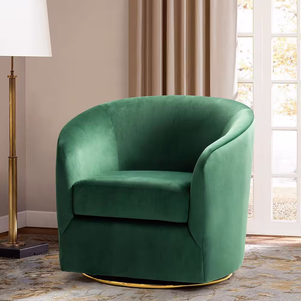 JAYDEN CREATION Estefan Green Comfy Velvet Swivel Barrel Chair with Metal Base