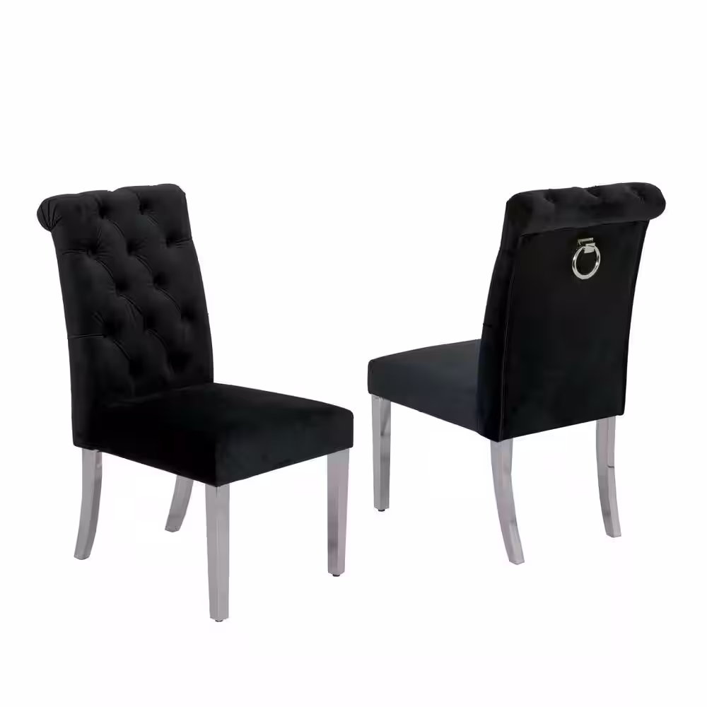 None Andy Black Velvet Stainless Steel Dining Chairs (Set of 2)