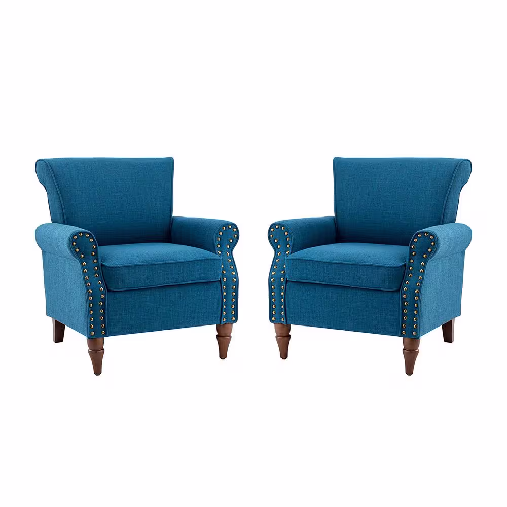 JAYDEN CREATION Macedonia Navy ArmChair with Nailhead Trim (Set of 2)