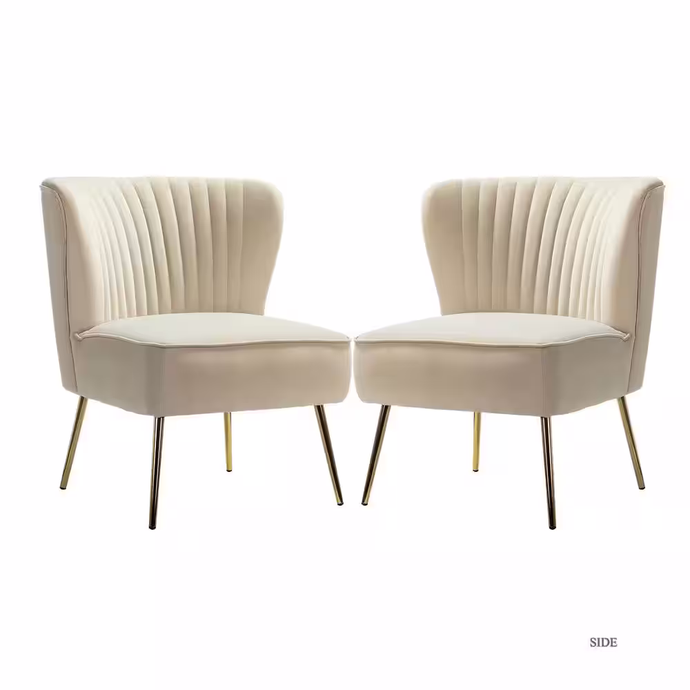 JAYDEN CREATION Monica Modern Tan Velvet Comfy Living Room Side Chair with Golden Metal Legs (Set of 2)