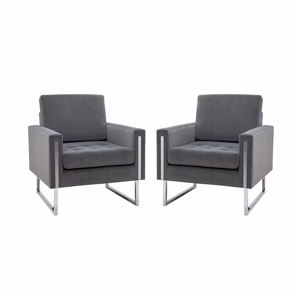 JAYDEN CREATION Dardanus Modern Grey Velvet Club Chair with Embedded Metal Armrests Set of 2