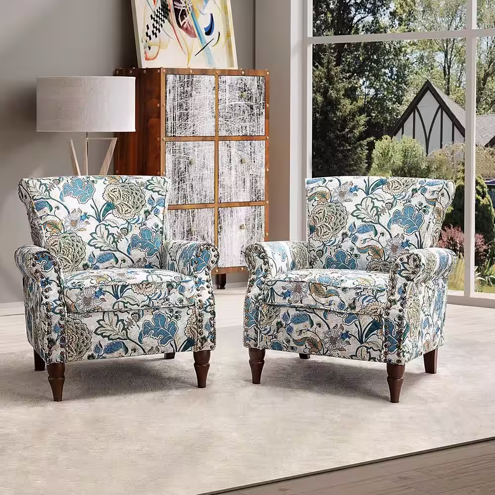 JAYDEN CREATION Auria Contemporary Green Polyester Armchair with Nailhead Trim and Turned Legs (Set of 2)