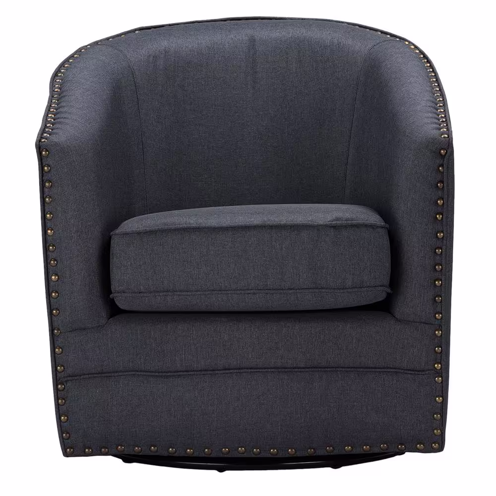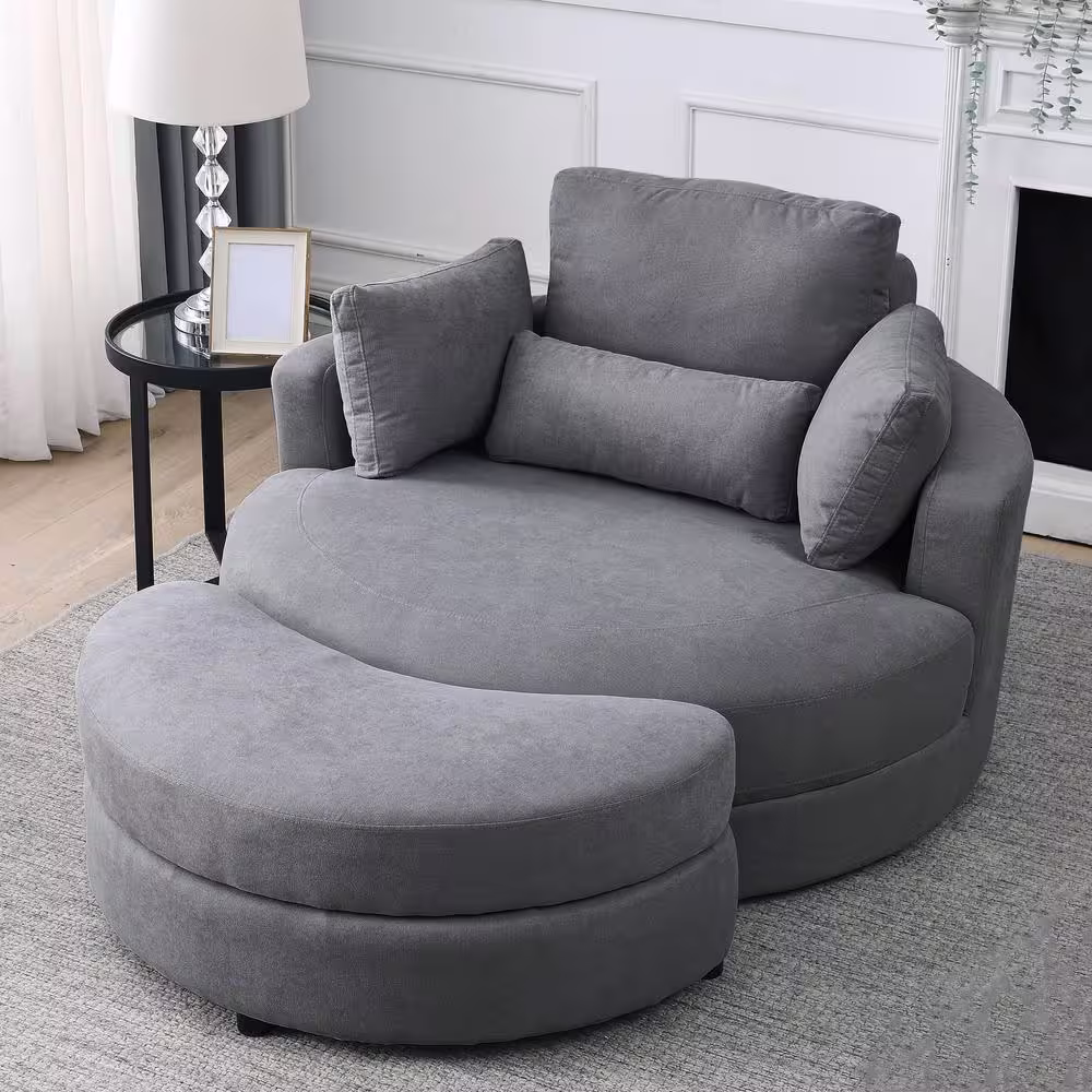 Magic Home 51 in. Swivel Accent Barrel Sofa Linen Fabric Lounge Club Big Round Chair with Storage Ottoman and Pillows, Dark Gray